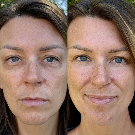Red light therapy + stimulation improve blood flow and collagen production, reducing fine lines.