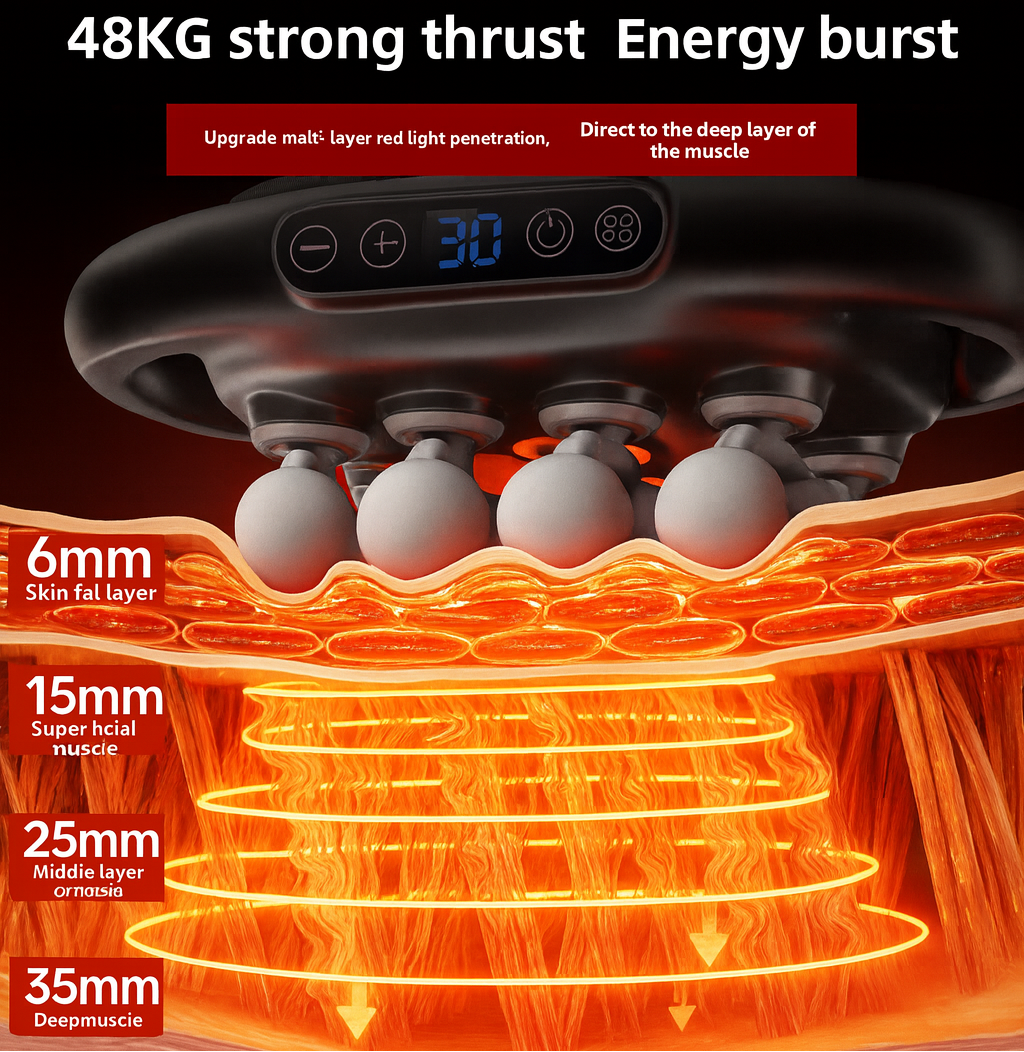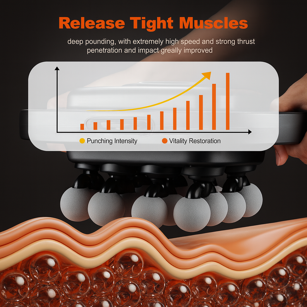 Deep, high-speed percussion penetrates muscle layers to break up knots and stiffness.